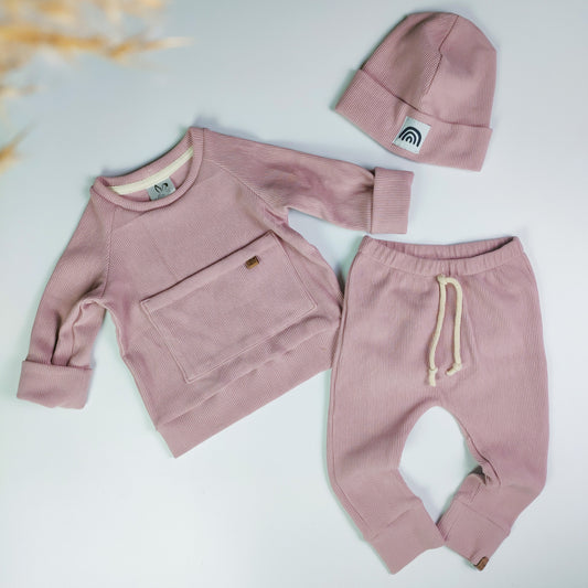 Hoodie Rippenoptik Teddykapuze - Helles Altrosa