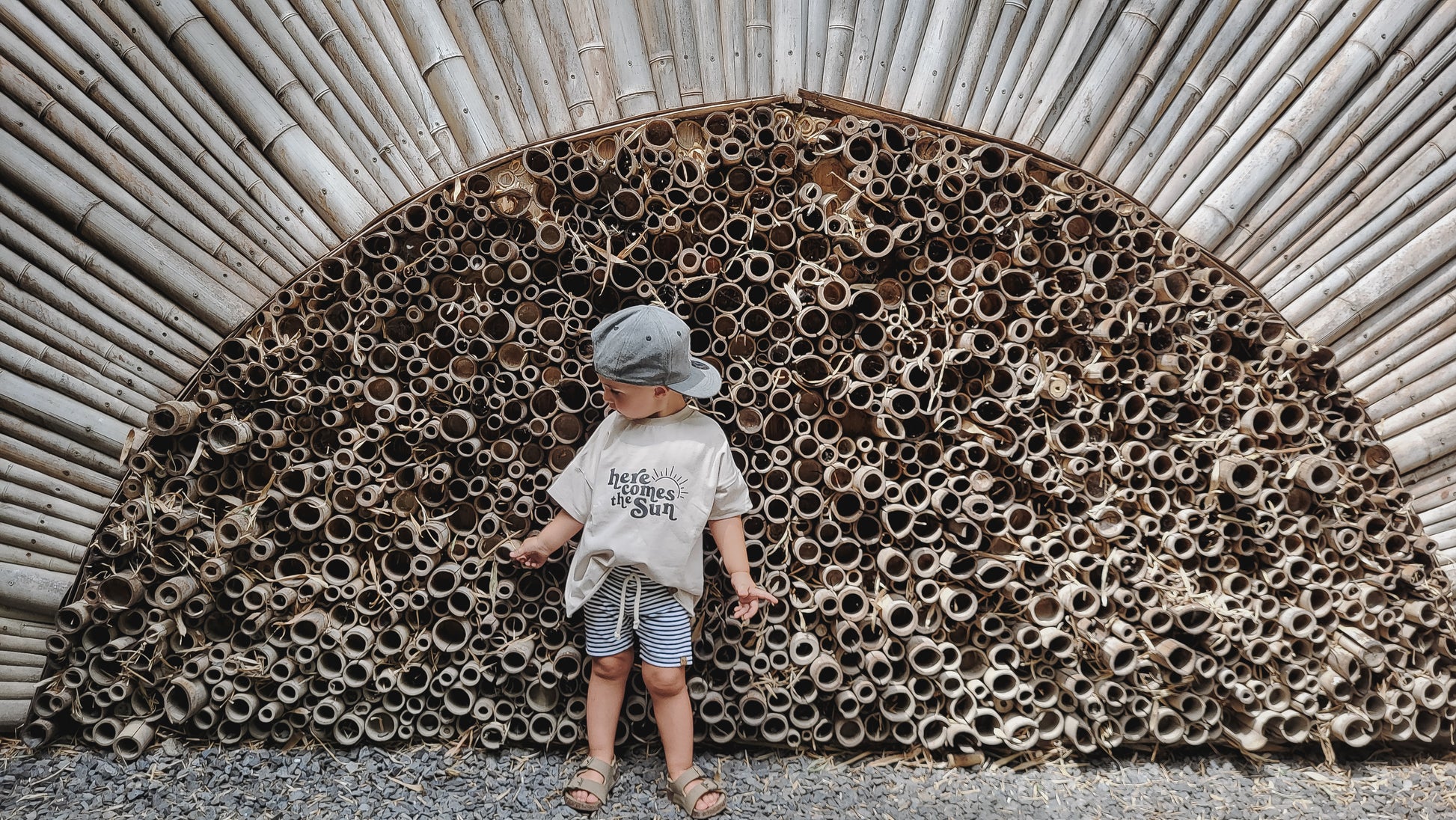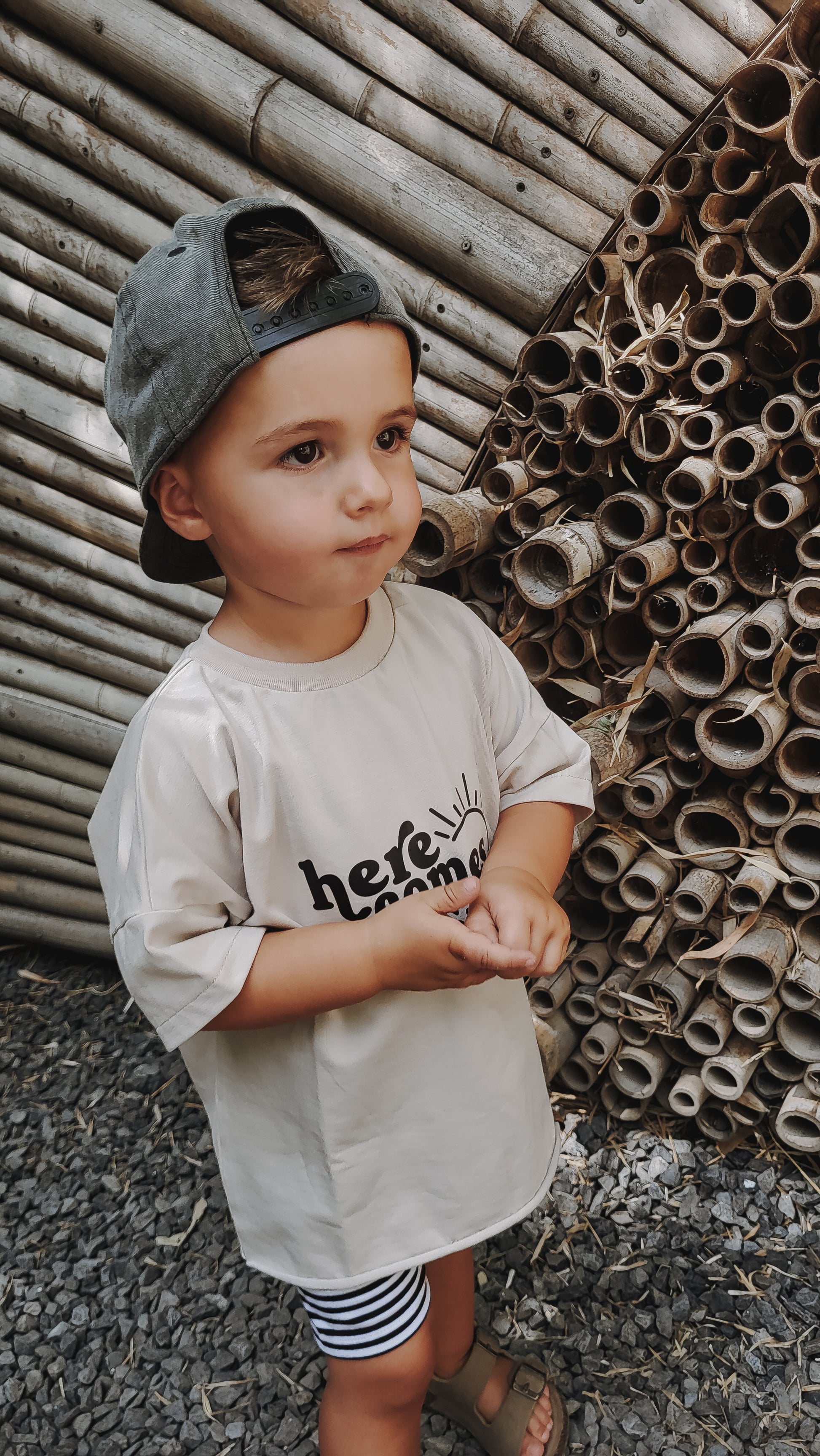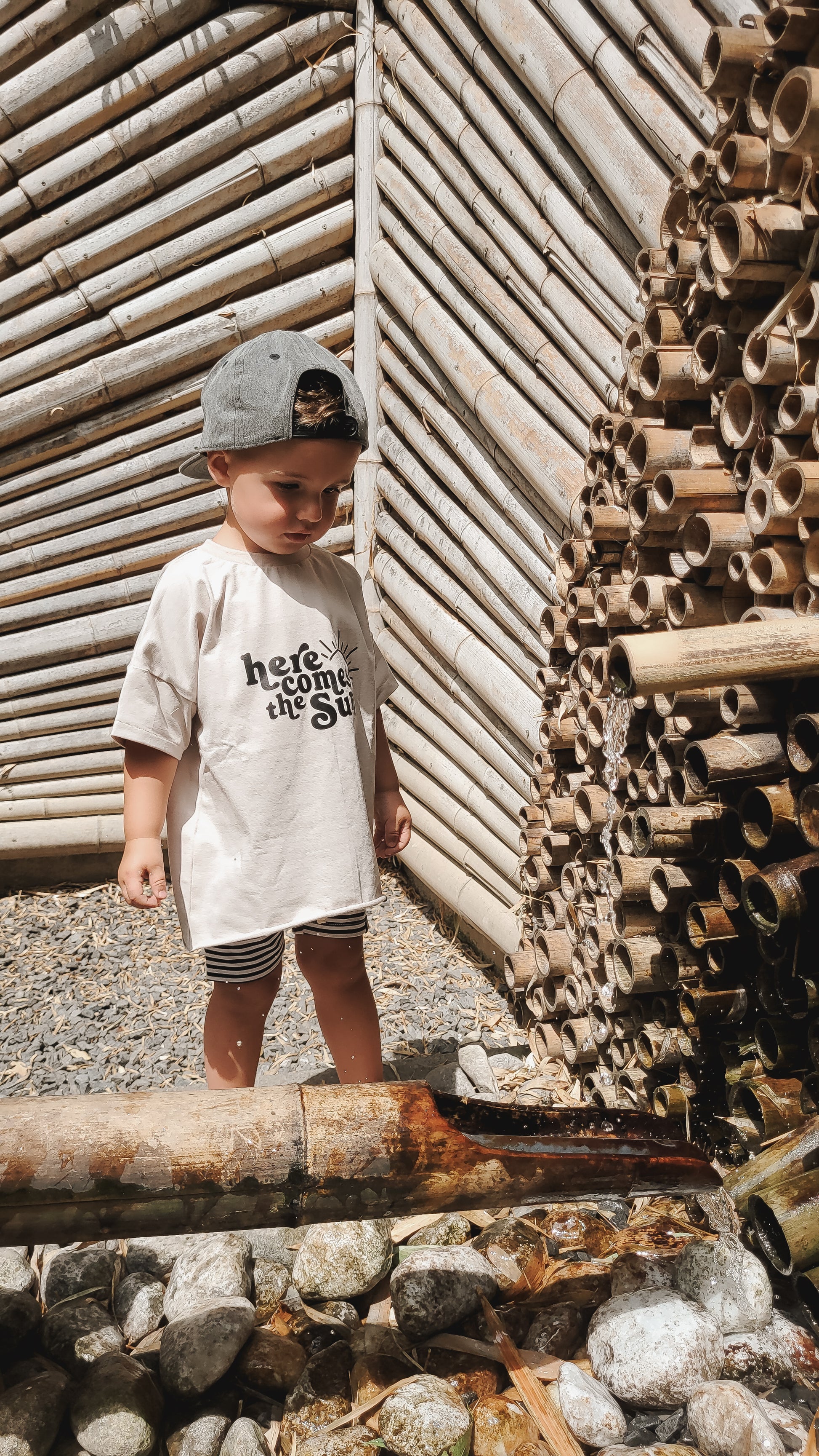 - Farbe: Beige mit schwarzem „HERE COMES THE SUN“-Print