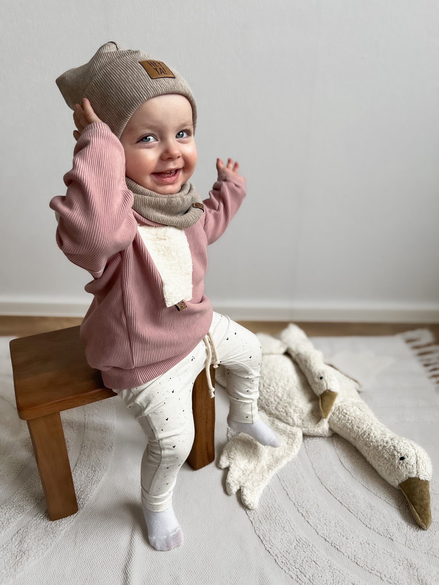 - Kuscheliger Tragekomfort: Der weiche Rippenjersey sorgt für ein angenehmes Tragegefühl und ist ideal für alle Jahreszeiten – leicht, aber trotzdem warm.