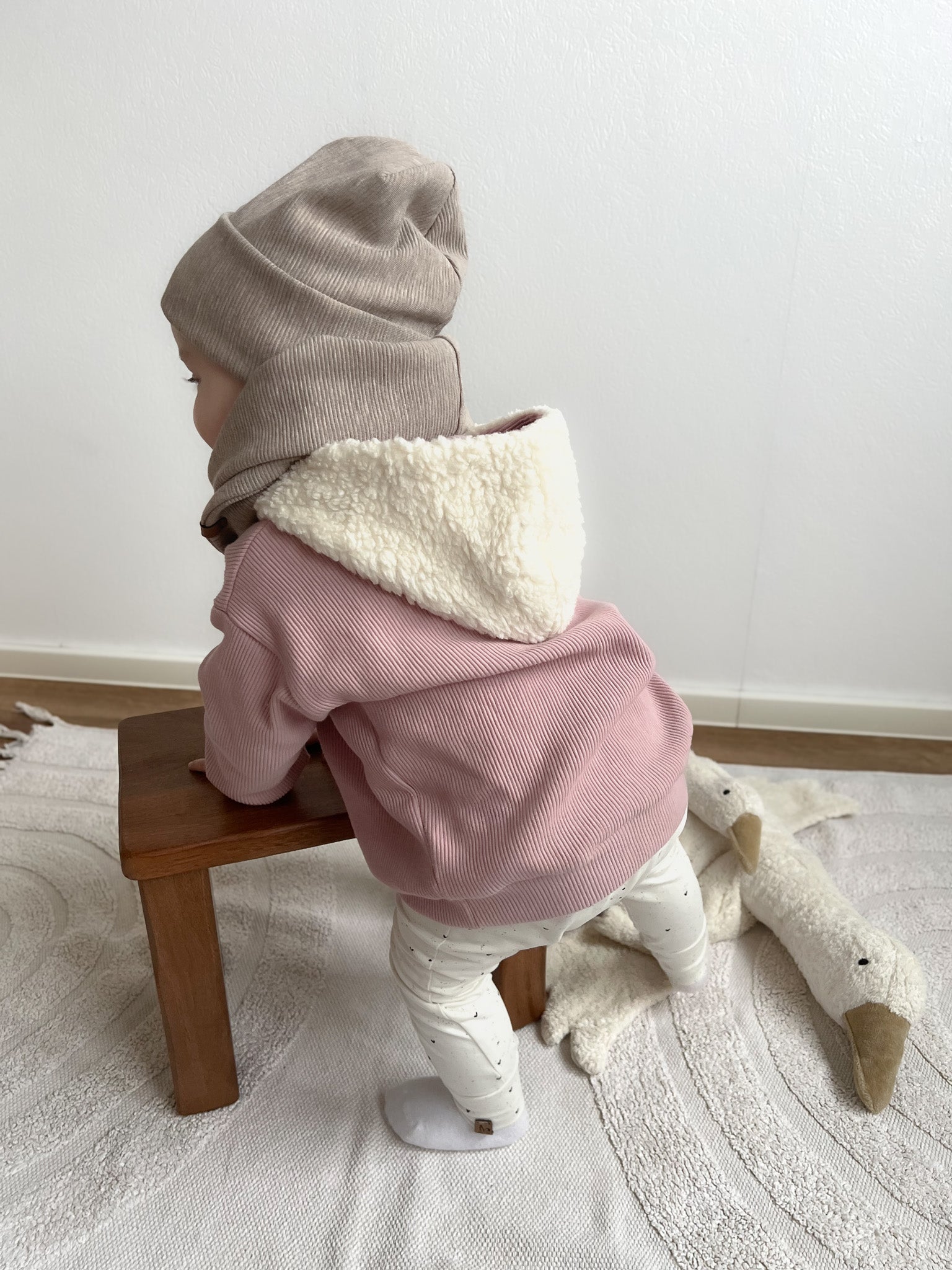 Hoodie Rippenoptik Teddykapuze - Helles Altrosa