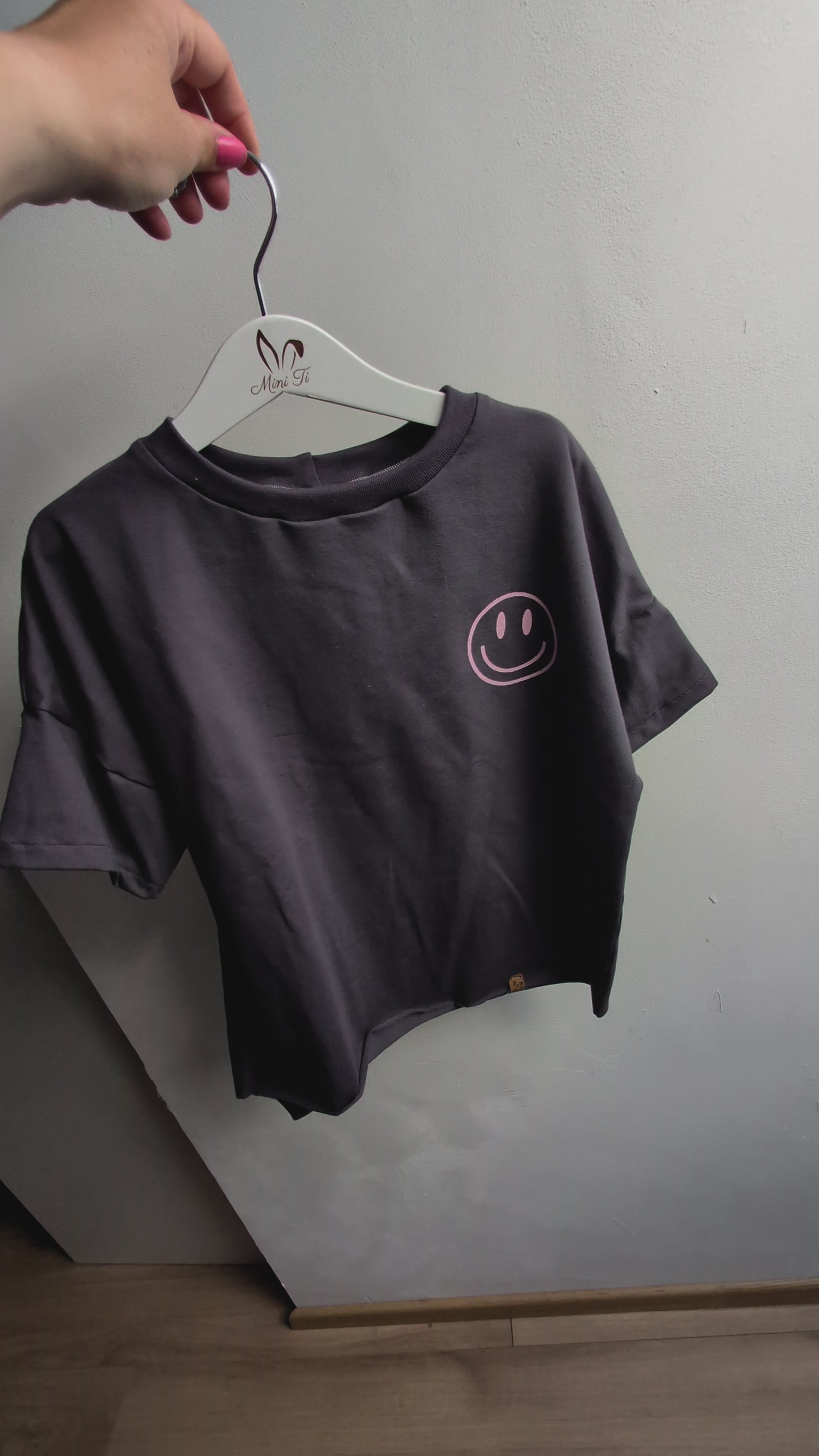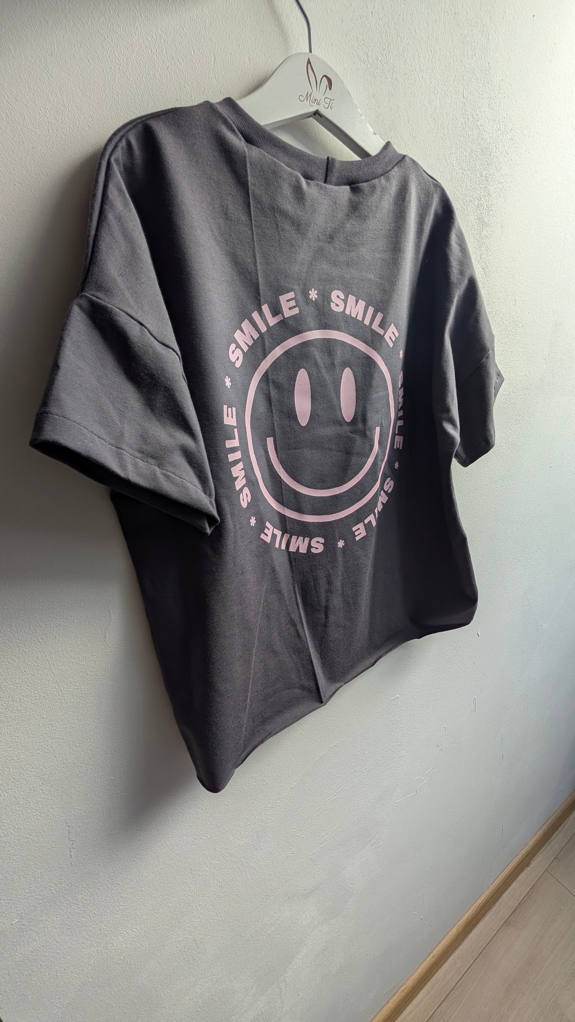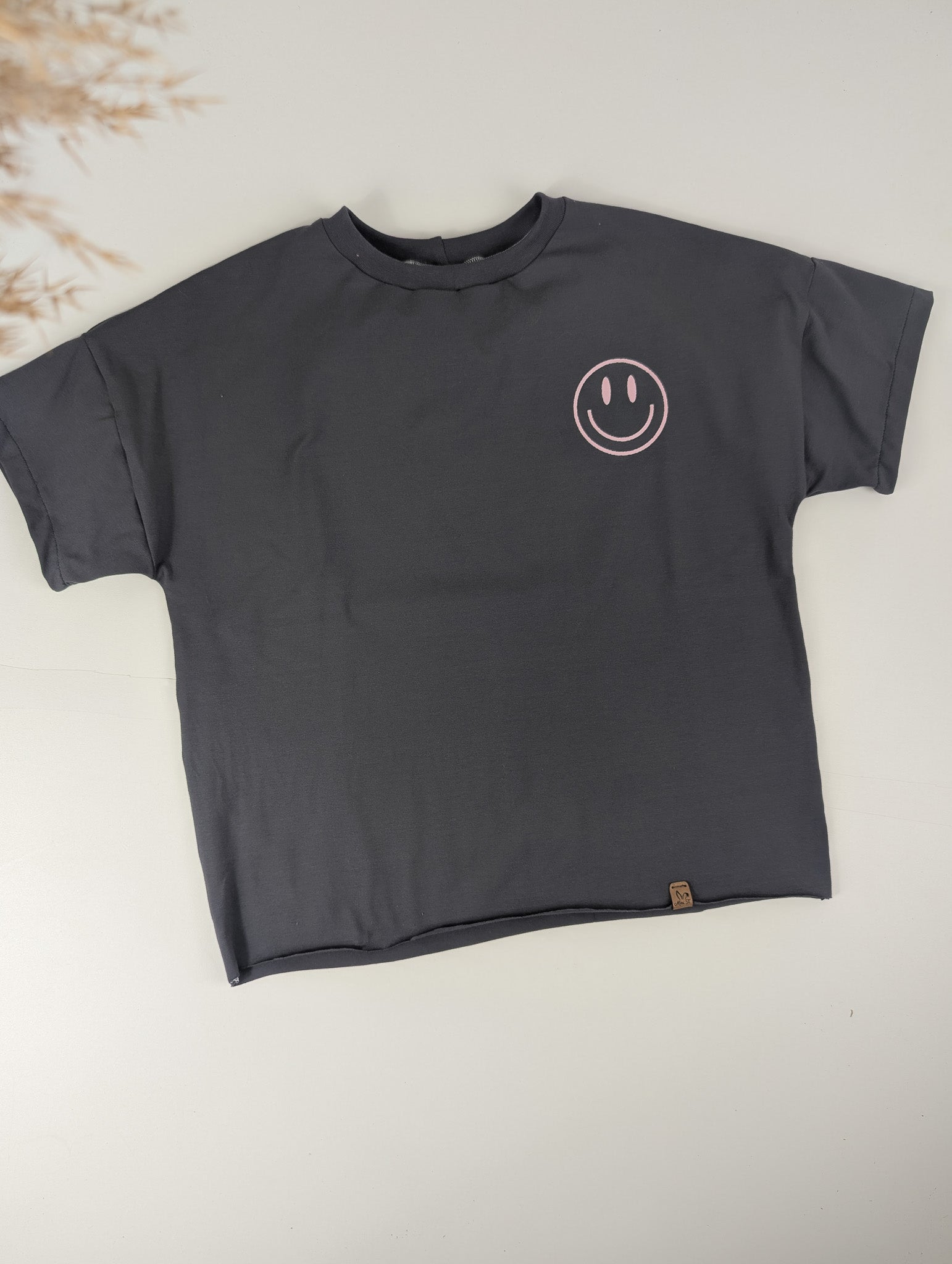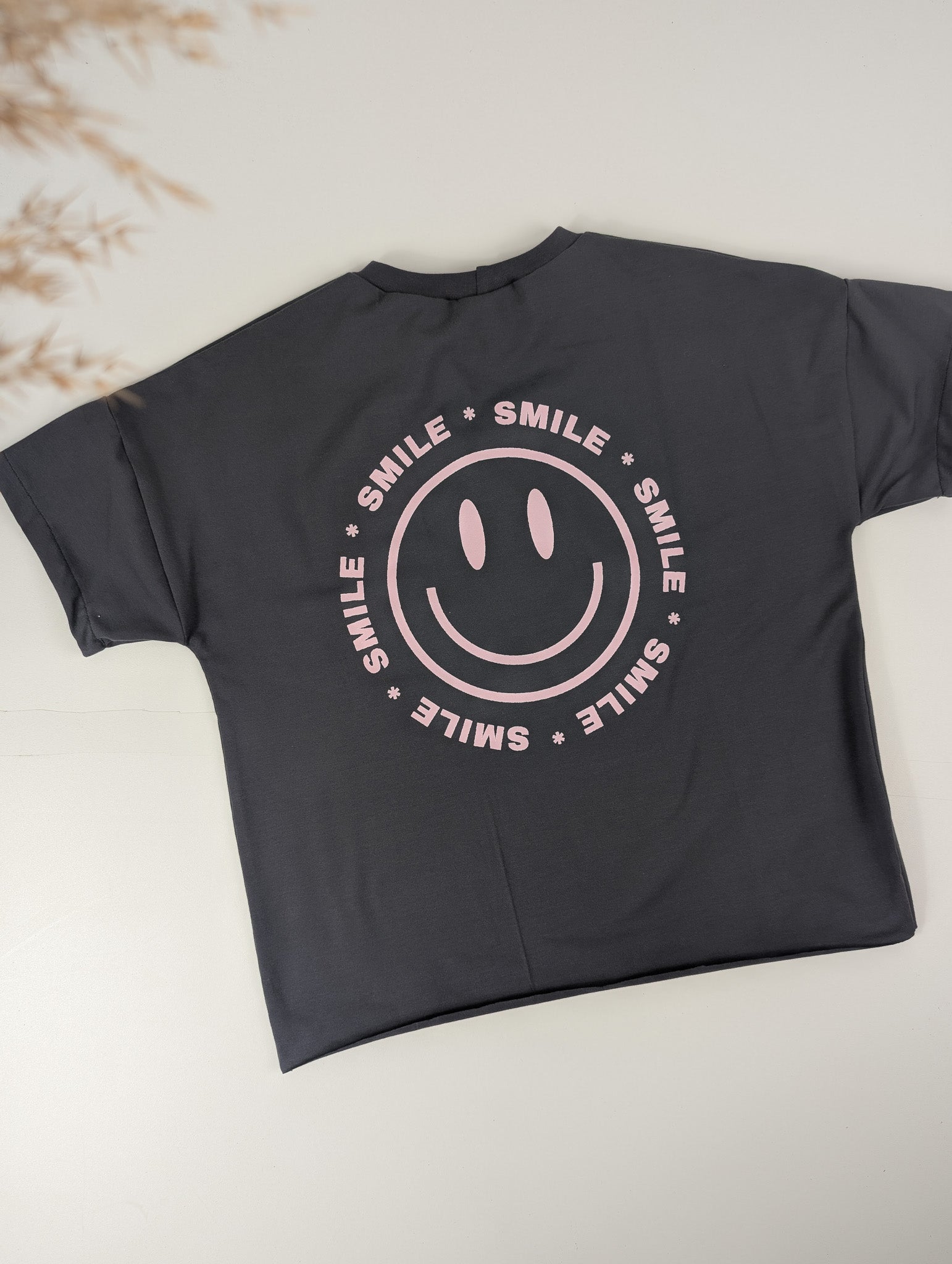 Shirt „SMILEY“ – Antracite mit rosa Print