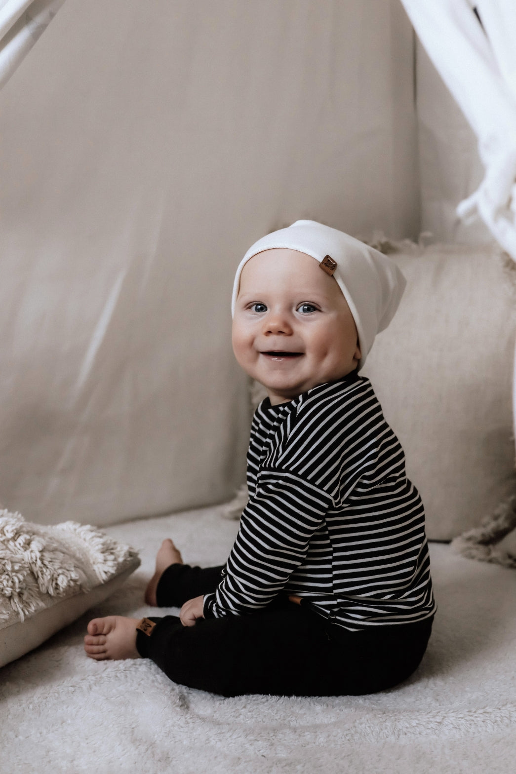 Pullover „Stripes Black & White“ – Handgefertigt aus Baumwolljersey