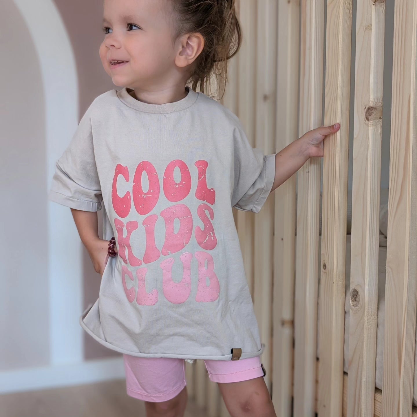Shirt „COOL KIDS CLUB“ – Beige mit rosa, pinkem Schriftzug