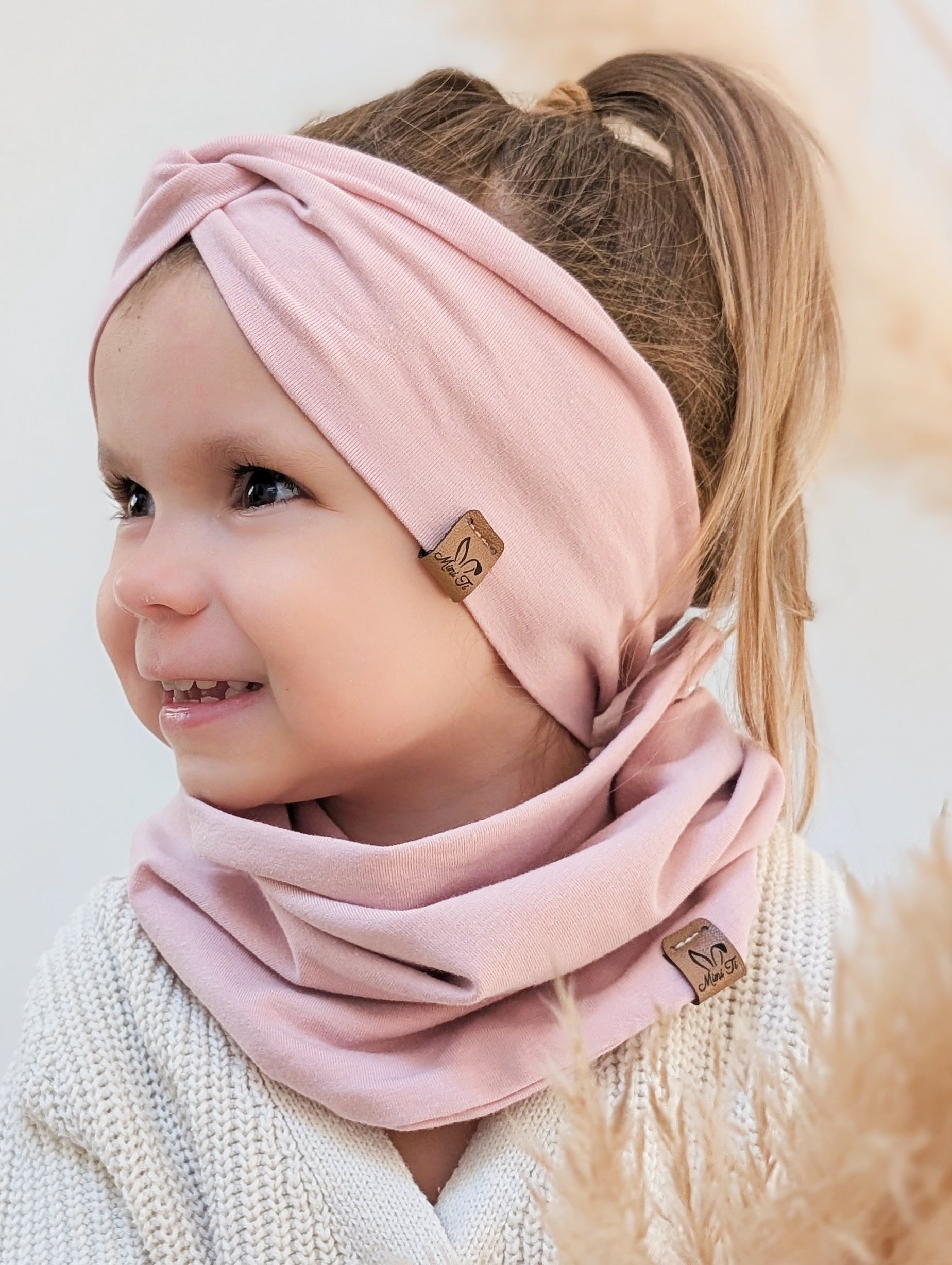 Auf den Tragefotos siehst du das Stirnband in der Farbe helles Altrosa, aber schau dir unbedingt auch die vielen anderen Farben an – für jeden Geschmack ist etwas dabei! 🤍