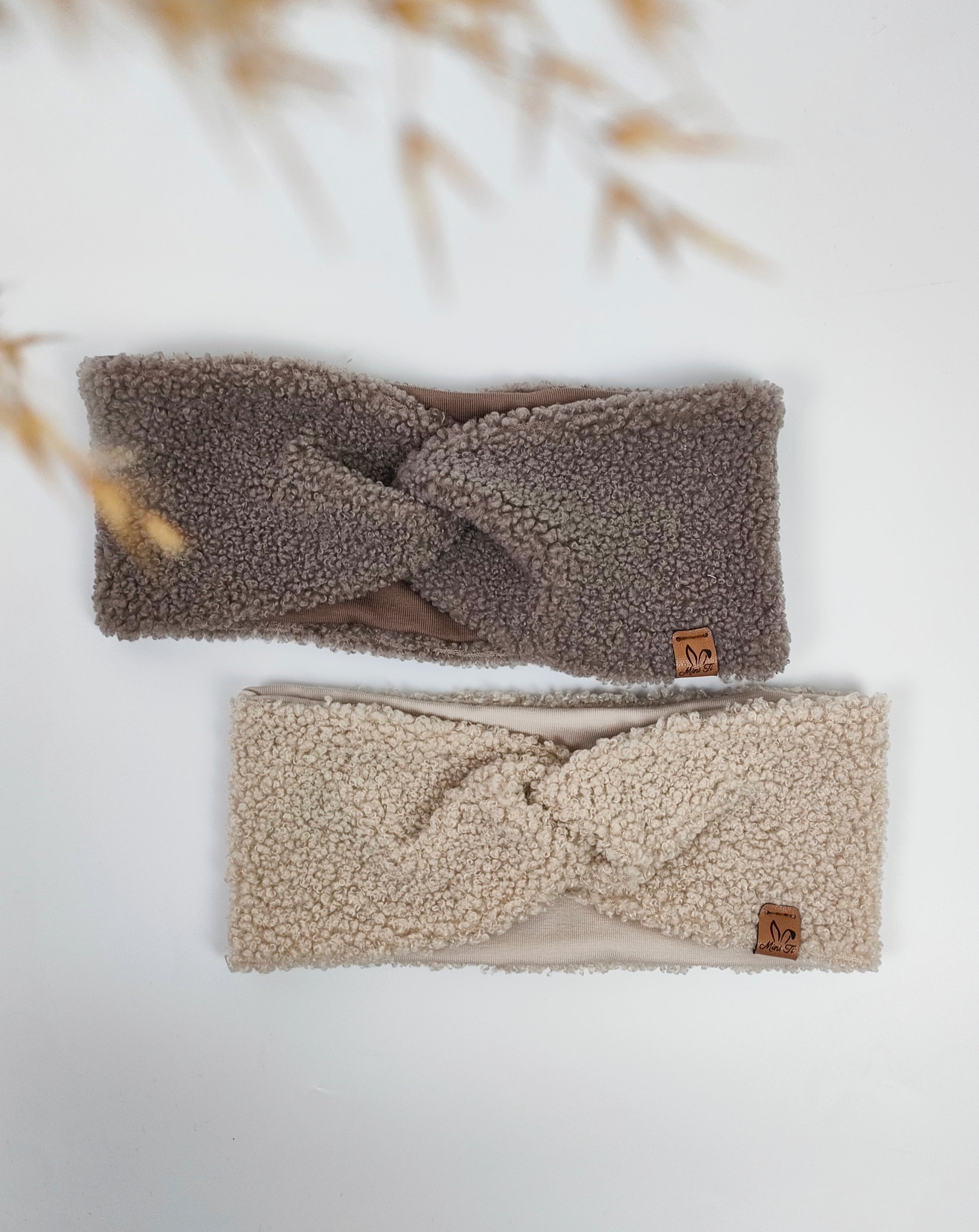 Kuschliges Stirnband im Teddystoff – Beige & Smokey Beige