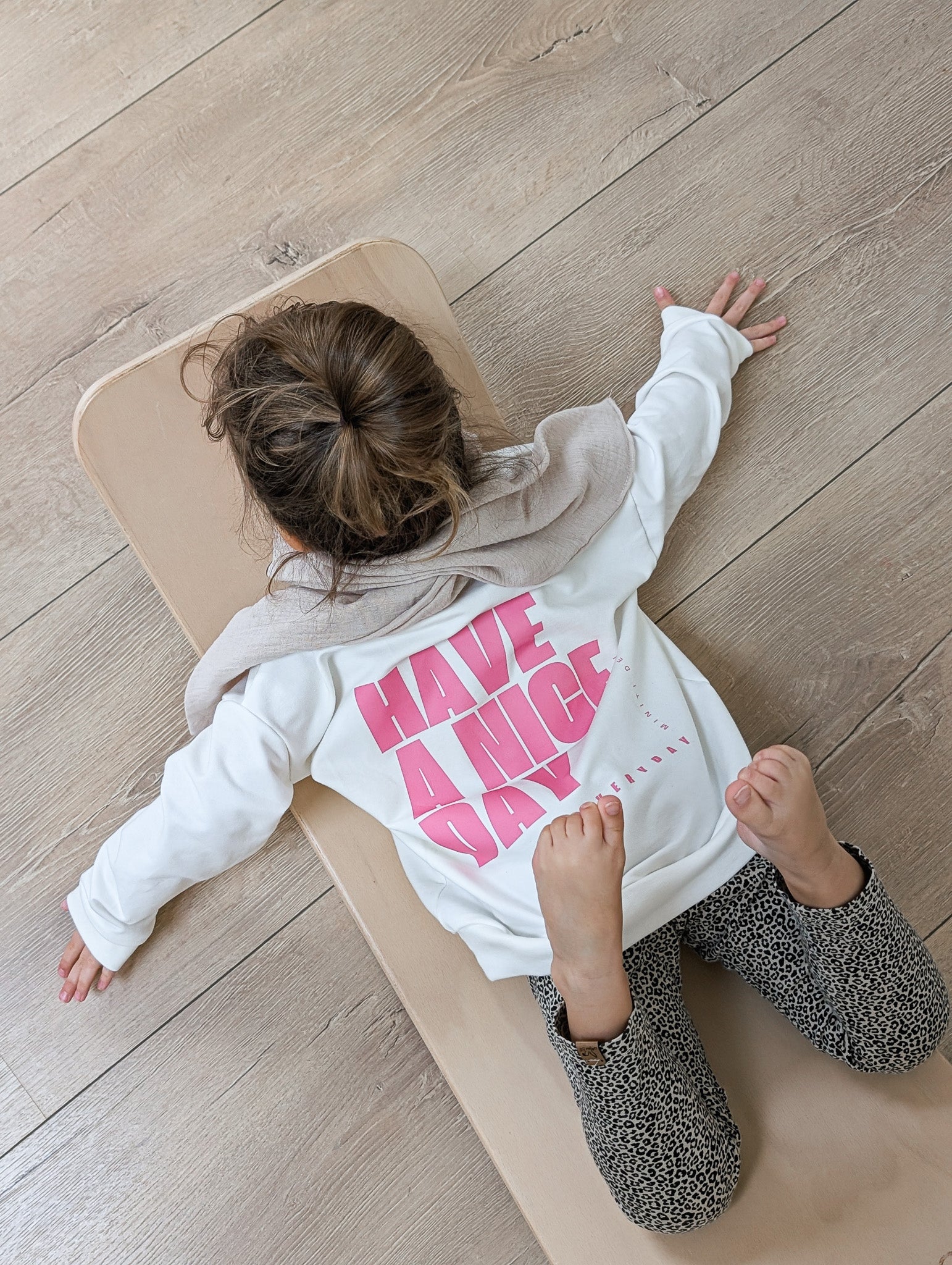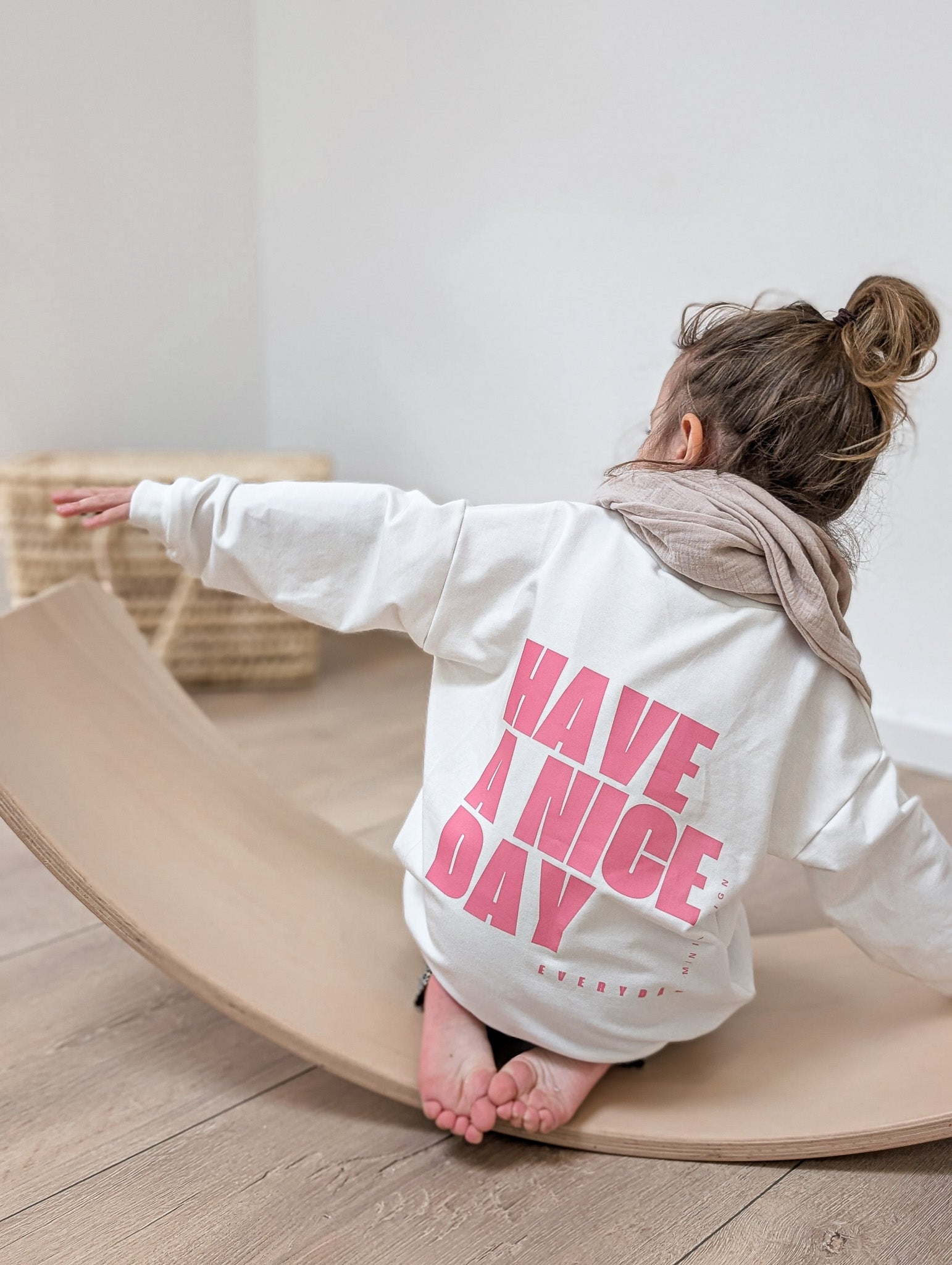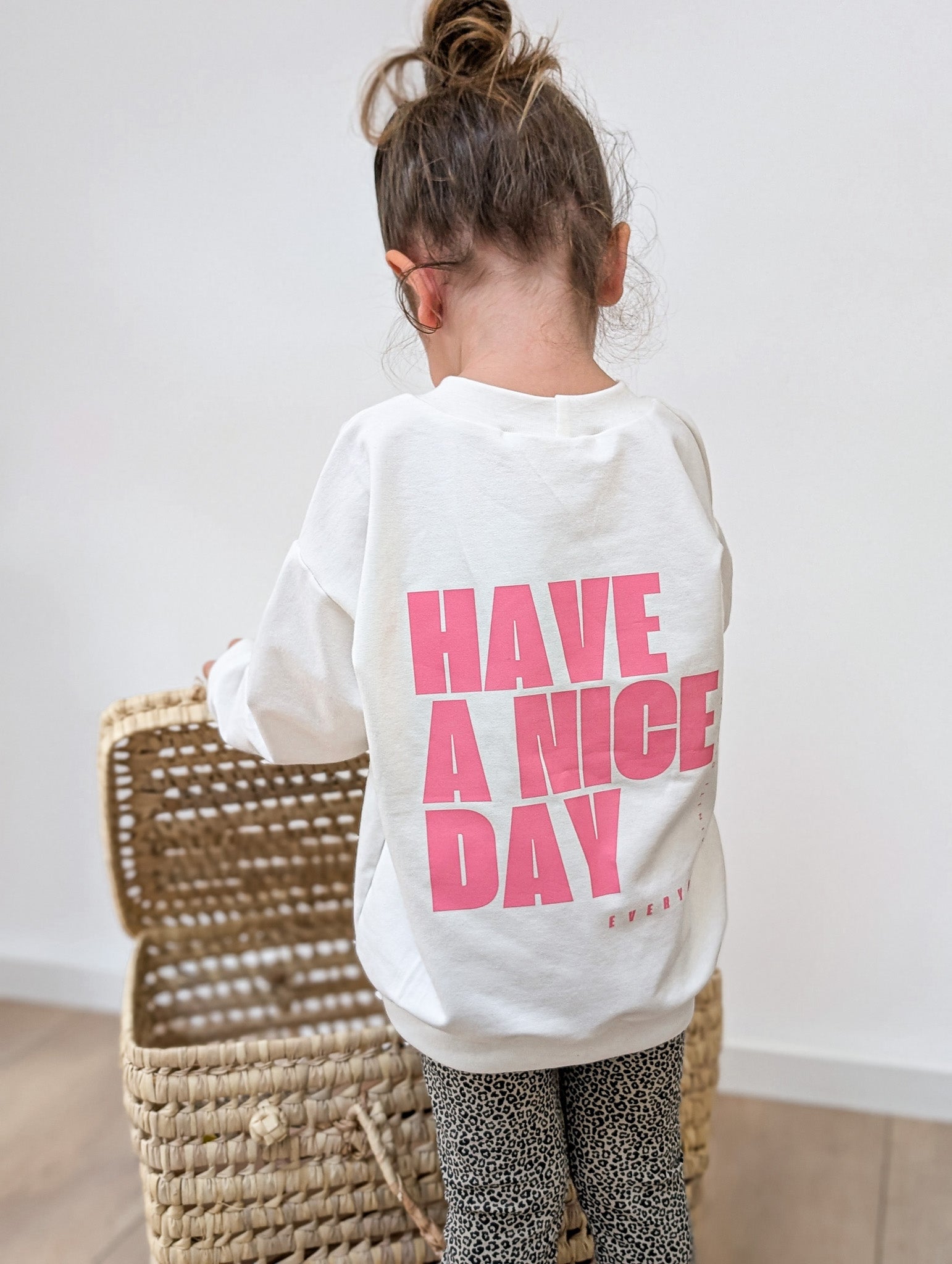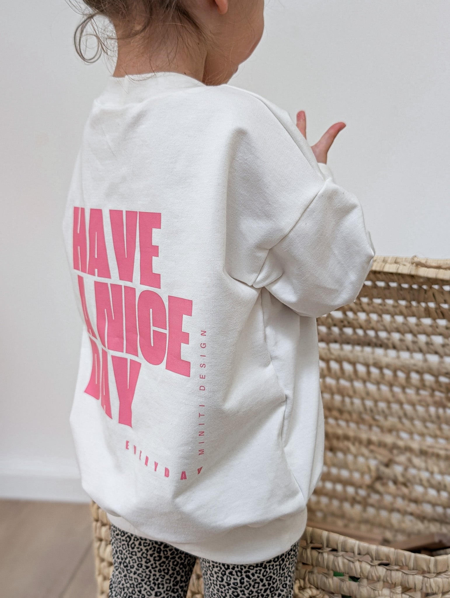 Sweater „Have a Nice Day“ – Cremeweiß mit knalligem Rosa